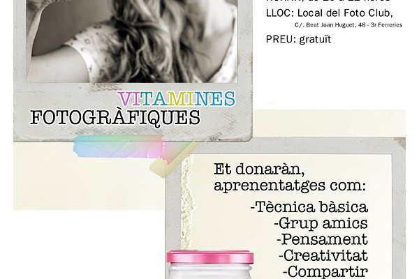 Aquest dissabte 19 començará es nou taller de na Ana Capó VITAMINES FOTOGRÀFIQUES en es local des fotoclub.
